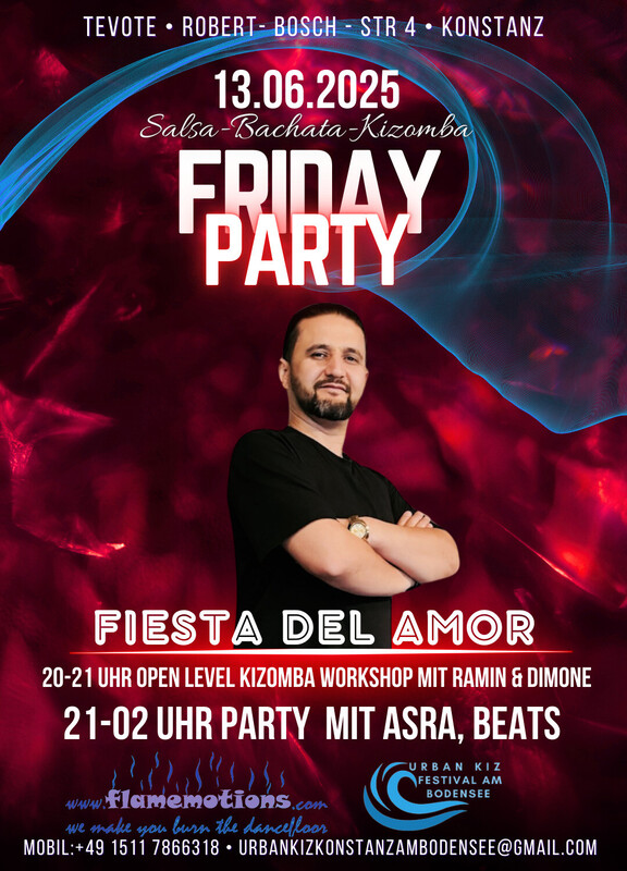 ΰΌ» π πππππ πππ ππππ ΰΌΊ πππππ π ππππππ πππππ β¦ Salsa β¦ Bachata β¦ Kizomba β¦ Taucht ein in die Welt der Musik und des Tanzes! Die Fiesta del Amor lΓ€dt euch zu einer unvergesslichen Nacht voller Leidenschaft, Freude und lateinamerikanischer Rhythmen ein. Ob Salsa-, Bachata- oder Kizomba-Fan β hier kommen Tanzbegeisterte zusammen, um gemeinsam zu feiern! π Wann? Jeden Freitag π Programm: 20:00 Uhr: Workshop (Open Level β fΓΌr alle geeignet) 21:00 - 22:00 Uhr: BegrΓΌΓung mit einem Glas Sekt β stoΓt mit uns an! 21:00 Uhr: Party-Beginn β Die TanzflΓ€che gehΓΆrt euch! Unser DJ sorgt bis 02:00 Uhr fΓΌr die perfekte Mischung aus Salsa, Bachata und Kizomba. β¨ Eintritt: Der Eintritt auf Spendenbasis um die Gage des DJs und die Raummiete zu decken. πΉ Wichtiger Hinweis: Bitte bringt keine eigenen GetrΓ€nke mit. Unsere Bar bietet euch eine Auswahl an kΓΌhlen Drinks, um euren Abend perfekt zu machen. π Location: Robert-Bosch-StraΓe 4, 78467 Konstanz π Besondere Highlights: π Professioneller Tanzboden fΓΌr das ultimative TanzvergnΓΌgen π Kostenlose ParkplΓ€tze direkt vor Ort Verpasst nicht diese besondere Nacht! Tanzt, feiert und genieΓt die Fiesta del Amor mit uns β jeden Freitag! Wir freuen uns auf euch! π΄πΆππΊ https://www.facebook.com/share/19MaTGY6VH/