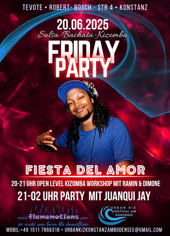 ΰΌ» π…πˆπ„π’π“π€ 𝐃𝐄𝐋 π€πŒπŽπ‘ ΰΌΊ 𝐉𝐄𝐃𝐄𝐍 π…π‘π„πˆπ“π€π† 𝐀𝐁𝐄𝐍𝐃 ❦ Salsa ❦ Bachata ❦ Kizomba ❦ Taucht ein in die Welt der Musik und des Tanzes! Die Fiesta del Amor lΓ€dt euch zu einer unvergesslichen Nacht voller Leidenschaft, Freude und lateinamerikanischer Rhythmen ein. Ob Salsa-, Bachata- oder Kizomba-Fan – hier kommen Tanzbegeisterte zusammen, um gemeinsam zu feiern! πŸ“… Wann? Jeden Freitag πŸ•– Programm: 20:00 Uhr: Workshop (Open Level – fΓΌr alle geeignet) 21:00 - 22:00 Uhr: Begrüßung mit einem Glas Sekt – stoßt mit uns an! 21:00 Uhr: Party-Beginn – Die TanzflΓ€che gehΓΆrt euch! Unser DJ sorgt bis 02:00 Uhr fΓΌr die perfekte Mischung aus Salsa, Bachata und Kizomba. ✨ Eintritt: Der Eintritt auf Spendenbasis um die Gage des DJs und die Raummiete zu decken. 🍹 Wichtiger Hinweis: Bitte bringt keine eigenen GetrΓ€nke mit. Unsere Bar bietet euch eine Auswahl an kΓΌhlen Drinks, um euren Abend perfekt zu machen. πŸ“ Location: Robert-Bosch-Straße 4, 78467 Konstanz 🎊 Besondere Highlights: πŸ’ƒ Professioneller Tanzboden fΓΌr das ultimative TanzvergnΓΌgen πŸš— Kostenlose ParkplΓ€tze direkt vor Ort Verpasst nicht diese besondere Nacht! Tanzt, feiert und genießt die Fiesta del Amor mit uns – jeden Freitag! Wir freuen uns auf euch! πŸŒ΄πŸŽΆπŸ’ƒπŸ•Ί https://www.facebook.com/share/16pcRehHvB/