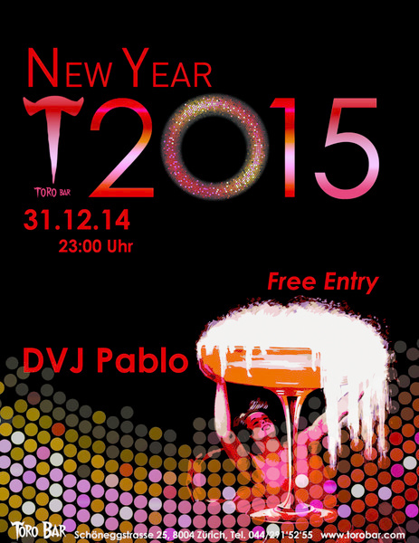 New Year 2015 Toro Bar In der Toro Bar feierst Du den Silvester wie in Spanien; um Mitternacht gibt es die traditionellen 12 Trauben, dann wird auf das neue Jahr angestossen und bis in die frühen Morgenstunden gefeiert und getanzt! Die Silvesterparty bei der Dich statt einem teuren Eintritt (gratis!) fantastische Stimmung und gute Drinks erwarten. Der Abschluss dieses wilden Jahres soll gefeiert werden und auch gleichzeitig ein Auftakt für ein spannendes 2015 sein! Komm und feier mit uns zu feinster Musik und den besten “Cubatas” in der Stadt! RESERVIERE NOCH HEUTE DEINE LOUNGE reservation@torobar.com FREE ENTRY! 23.00 – open end Fiesta de Noche Vieja La fiesta de Noche Vieja que no tienes que pagar entrada, ya que es ENTRADA LIBRE y donde puedes disfrutar de las mejores copas de la ciudad.Para acabar este año y empezar un 2015 no te pierdas la fiesta de Noche Vieja en el Toro Bar. Disfruta de la mejor musica y de los mejores cubatas de la ciudad. Reserva tu mesa: reservation@torobar.com ENTRADA LIBRE! 23.00 – open end www.torobar.com