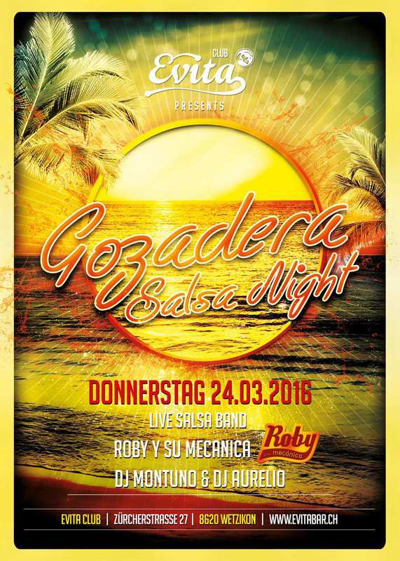*LIVE * ROBY Y SU MECANICA DONNERSTAG 24. MÄRZ. 2016 AB 22.00 UHR EINTRITT CHF 15.- Line Up: DJs Montuno & Aurelio Live: Roby y su Mecanica Styles: Salsa, Merengue, Bachata, Kizomba GOZADERA steht für hochwertiges Nachtleben in familiärem Rahmen, also exakt für die Qualität, für die auch das Evita selbst steht. GOZADERA ist aber noch viel, viel mehr als das: Hier steht nämlich nicht Hinz und Kunz an den Plattenteller sondern ausschliesslich Professionals mit Gold in den Handgelenken und einem untrüglichen Riecher für den richtigen Track im richtigen Moment. Dj Aurelio, Dj Montuno lassen die Nadel durch die Rillen flitzen und Roby y su Mecanica spielen ihre schönsten Songs Evita ist jeden Besuch wert und verliert auch nach dem hundertsten nichts von ihrem Reiz. Lounge Reservationen unter: info@evitabar.ch / Tel. +41 44 932 71 71 Ein Ausgang, ein Name: Evita