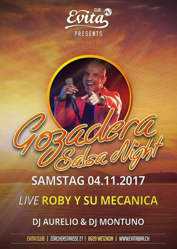 ☀️🌴 GOZADERA SALSA NIGHT 🌴☀️ 💎💎💎 ROBY Y SU MECANICA LIVE 💎💎💎 SAMSTAG 04. NOVEMBER 2017 GREAT SALSA DUO: 🎼 DJ MONTUNO 🎧 (CUBAN SESSION) 🎼 DJ AURELIO🎧 (EL PADRINO, BARRIO LATINO) 🕎🔪 EVITA CLUB WETZIKON ZH 🕎🔪 ➜ NOS VEMOS EN EL EVITA CON MUCHAS SORPRESAS! 😉 💚 WE LOVE GOZADERA 💚 MORE INFOS: https://www.facebook.com/events/136393763657340/?ti=cl Open Door´s @22:00 Sound & Style SALSA I TIMBA I MERENGUE I BACHATA I KIZOMBA