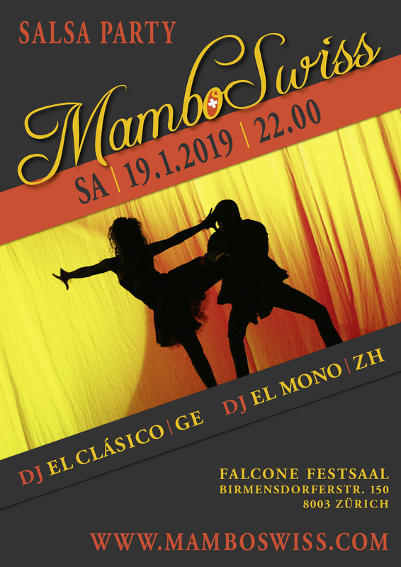 MamboSwiss Jan 19th 2019 Salsa party. Let's party every third Saturday! MamboSwiss would like to invite you to a great night with these DJs: - Dj El Clásico - Dj El Mono Make sure to invite your friends on Facebook and share the event. It’s your party! Your MamboSwiss Team -- MamboSwiss lädt dich zu einem tollen Abend mit folgenden Djs ein: - Dj El Clásico - Dj El Mono Bitte lade deine Facebook-Freunde ein oder teile diesen Event. Es ist deine Party! Dein MamboSwiss-Team -- MamboSwiss 2019 - Jan 19th: https://www.facebook.com/events/181733012655443/ - Feb 16th: https://www.facebook.com/events/1836875843272802/ - Mar 16th: https://www.facebook.com/events/449492462164633/ - Apr 20th: https://www.facebook.com/events/378160569333960/ - May 18th: https://www.facebook.com/events/2139386732959169/ - Aug 17th: https://www.facebook.com/events/634970713508353/ - Sep 21st: https://www.facebook.com/events/992933357538212/ 7th Anniversary - Oct 18th & 19th: https://www.facebook.com/events/2260464340847739/ - Dec 21st: https://www.facebook.com/events/598553163842200/ All MamboSwiss events: https://mamboswiss.com/mamboswiss-events/ https://mamboswiss.com/events/mamboswiss-jan-19th-2019/