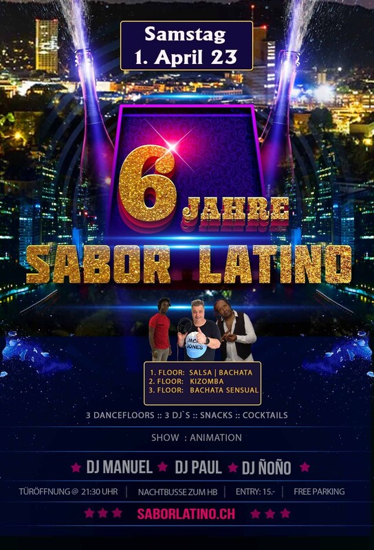 😍😍 6 Jahre Sabor Latino!!😍😍 Das muss doch gefeiert werden. 🔥 Auf 3 Dancefloors legen die DJ`s auf, die uns über die Jahre begleitet und unterstützt haben. 🔥 Showtime 🔥 Animation 🔥 Cocktailstation 🔥 Snacks 🔥 Top Tänzer und Tänzerinnen Entry: 15.- Genügend freie Parkplätze vor dem Club. Es darf auf allen freien Flächen auf dem Gelände geparkt werden. Nur die Plätze vor den beiden Häusern links nach der Einfahrt in die Werkstrasse und die mit “Borsalino” gekennzeichneten Plätze visavis vom Sabor Latino sind tabu. Mehr über den Club erfährst Du hier: Im Club Sabor Latino wird die Nacht zum einmaligen Event. www.saborlatino.ch
