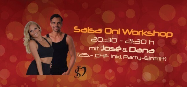 Lerne neue Salsa Figuren mit José & Dana (Tanzstudio "SalsaLuca" aus Bern) und tanze diese gleich anschliessend an der Fiesta Pasión ab 21:30 Uhr mit 3 Floors u.a. mit Salsa Floor by DJ Pietro! Workshop inkl. Party-Eintritt Fiesta Pasión für 25.- CHF Abendkasse oder Vorverkauf via Eventfrog: https://eventfrog.ch/de/p/kurse-seminare/musik-tanz/salsa-on1-workshop-mit-jose-dana-salsaluca-7152797745849247975.html https://eventfrog.ch/de/p/kurse-seminare/musik-tanz/salsa-on1-workshop-mit-jose-dana-salsaluca-7152797745849247975.html