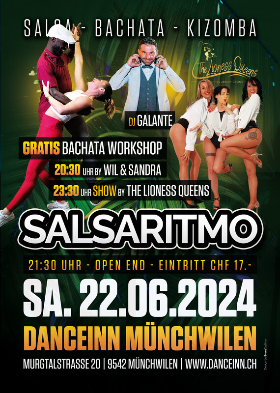 Das letzte mal vor den langen Sommer-Ferien☀️😎.. Let‘s Dance in einer der schönsten Location der Ostschweiz💃🏻🕺🏾.. ➡️20:30H - Gratis BACHATA Workshop by Wil & Sandra💃🏻🕺🏾👏.. ➡️21:30H - Open End, Partytime! ➡️23:30H SHOW by The Lioness Queens💃🏻💃🏻💃🏻💥.. ➡️Music by: DJ Galante🎧 Wir freuen uns auf einen tollen Workshop, eine coole SHOW und eine Super Party🥳🍹.. www.danceinn.ch