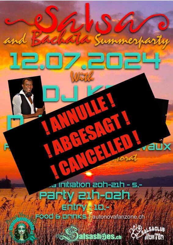 COMPTE TENU DE LA METEO INCERTAINE LE SALSA SUMMERPARTY EST ANNULE !!! La Summerparty Salsa & Bachata Night, c'est l'occasion unique de danser en plein air dans le cadre de la Fanzone Euro 2024 Musique Salsa & Bachata 2 DJ actifs dans la scène Salsa&Bachata --> DJ Saltho (Be) --> DJ Kad (Fr) Lieu Autonova Fanzone Salavaux En plein air ou à l'abri en cas de mauvais temps Sol en extérieur adapté pour la danse Parking gratuit Les plus Bar & Foodcorner Initiation salsa débutant 20h-21h Ambiance conviviale et cadre adapté pour un moment festif De 21h à 2h Entrée : 10.- (boissons & nourriture non inclus) www.kad-events.ch