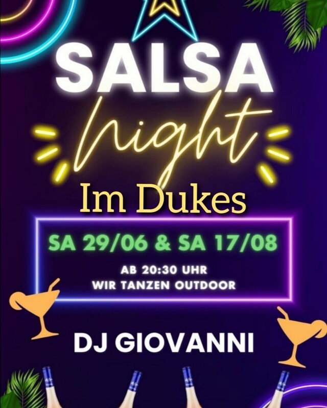 Salsa im Dukes in Sihlbrugg am Samstag, 29.06.2024 mit DJ Giovanni OUTDOOR!! Riesiges Zelt, somit wind- und regengeschützt! Desserts und Nachos bis um 23:30 bestellen ;-) Gratis Eintritt, viele Parkplätze vorhanden. Mit ÖV gut erreichbar. Viel Salsa, Bachata, Merengue
