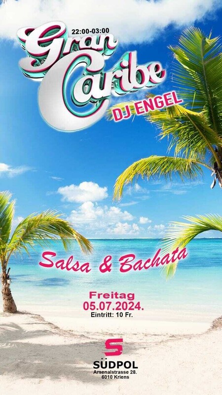 ---- Freitag 5. Juli ---- ★ Fiesta GRAN CARIBE ★ Salsa & Bachata tanzen im Südpol! Luzern ---------------------------------------------- ★ SALSA FLOOR: Salsa All Styles & Bachata All Style mit DJ Engel ---------------------------------------------- 21.00 Uhr bis 02.00 Uhr EINTRITT 10.- (Nur Bargeld) Das Zentrum für Kultur in der Zentralschweiz. Mehrspartenhaus mit Tanz, Theater, Musik und Club. ★ SÜDPOL Arsenalstrasse 28, 6010 Kriens, www.sudpol.ch ------------------------------------------------------ "ANREISE WICHTIGE INFORMATIONEN" ---------------------------------------- Die Anfahrt mit Fahrrad oder ÖV wird empfohlen. Eine Wegbeschreibung findest Du via Google Maps. VELO: Vor und hinter dem Gebäude befinden sich ca. 200 Fahrradparkplätze. Vom Stadtzentrum Luzern ist der Südpol in etwa zehn Minuten via Freigleis zu erreichen. ÖV: Der Bus Nr. 14 fährt ab Bahnhof Luzern Richtung Horw Zentrum und hält direkt vor dem Haus. Die Haltestelle heisst Südpol. AUTO: Es steht nur eine beschränkte Anzahl Autoparkplätze für den Südpol zur Verfügung. Diese befinden sich unter dem neuen LSO-Gebäude und zwischen Metzger Center Zentralschweiz und dem neuen Backsteingebäude der Hochschule Musik Luzern. Die Parkplätze auf dem Vorplatz des Metzger Center Zentralschweiz stehen den Südpol-Besucher*innen nicht zur Verfügung. Als Ausweichmöglichkeit empfehlen wir das "Parkhaus Nidfeld". https://www.facebook.com/share/QXVthE35oU4XwPYU/