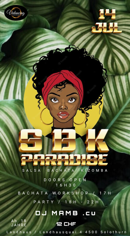 ☀️ SBK PARADISE PARTY ☀️ SALSA / BACHATA / KIZOMBA AND MORE ☀️ 14.07.24 ☀️ LANDHAUS, SOLOTHURN ☀️ DOOR OPEN/ 16H30 . ☀️ BACHATA WORKSHOP / 17H ☀️ PARTY / 18H - 22 ☀️ DJ MAMB cu🇨🇺 ☀️ PRICE / 12 CHF ☀️ ADDRESS/ LANDHAUSQUAI 4 4500 SOLOTHURN https://www.facebook.com/share/wGwo5zs4kafrTQys/