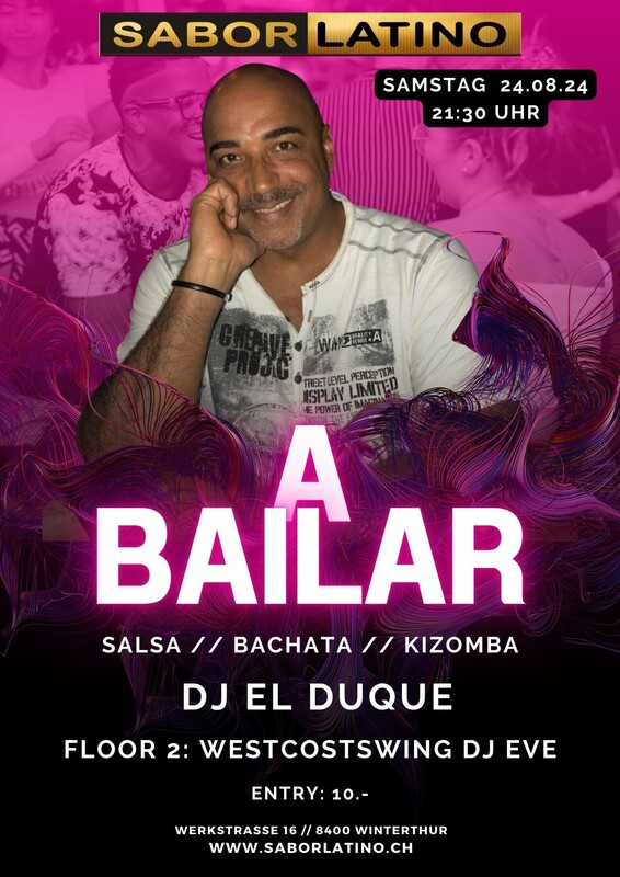 A Bailar, karibische Lebensfreude präsentiert durch die beste Musik von unseren DJ`s. Salsa, Bachata, Kizomba und auch Merengue wird er auflegen. Floor 1: DJ: El Duque Salsa / Bachata / Kizomba Floor 2: DJ Eve Westcoastswing www.saborlatino.ch