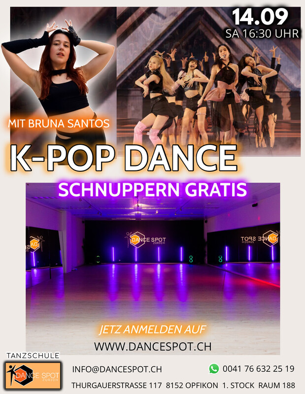 K-Pop beschreibt sowohl ein Musik- als auch ein zugehöriges Tanzgenre, welches Anfang der 1990 Jahre in Südkorea entstand. Seither wächst die Hallyu (Korean Wave) stetig, wobei sie die internationalen und westlichen Bühnen mehr und mehr für K-Pop Groups öffnet. Bei K-Pop handelt es sich um ein sehr vielseitiges Musikgenre, bei dem die Songs sehr unterschiedliche Stimmungen und Beats annehmen können. Die Songtexte sind grösstenteils auf koreanisch verfasst, haben jedoch zum Teil auch englische Einflüsse. Die Musik hat auch kulturell eine ganz besondere Bedeutung, da sie einen Einblick in die koreanische Kultur und die vorherrschenden Mode- und Beauty-Standards bietet. Die zugehörigen Tänze orientieren sich dabei hauptsächlich an Elementen aus verschiedenen Tanzrichtungen wie HipHop, Contemporary, Reggaeton, Waacking/Vogue, und sind, wie die Musik selbst, enorm vielseitig in der Gestaltung. In diesem Kurs lernt ihr aktuelle Choreographien, und entwickelt zusätzlich eure eigenen Choreos zu packenden Songs. K-Pop Choreographien sind besonders für ihre Dynamik, Energie, Detailreichtum und Synchronisation bekannt. Zusätzlich werden wir über aktuelle sowie historische Entwicklungen reden und für einen kulturellen Austausch sorgen. So wird K-Pop zum greifen nahe. Hier wird jeder Schüler dabei unterstützt, seine oder ihre eigene Tanz-Personality zu formen und das grosse Spektrum kennenzulernen, welches K-Pop verkörpert; von old school zu new school, von boy groups zu girl groups. References - Shinee, BigBang, 2NE1, EXO, BTS, Blackpink, ATEEZ, Stray Kids, ITZY, New Jeans Kursleitung: Bruna Santos Wann? : Samstags 16:30 - 17:30 Uhr Niveau: Fortlaufendes Level Kategorie: Solotanz https://www.dancespot.ch/kpop