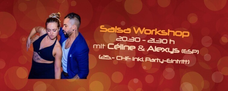 Lerne neue Salsa Figuren mit Céline & Alexys (ESP) und tanze diese gleich anschliessend an der Fiesta Pasión ab 21:30 Uhr mit 3 Floors u.a. mit Salsa Floor by DJ Ñoño! Workshop inkl. Party-Eintritt Fiesta Pasión für 25.- CHF Abendkasse oder Vorverkauf via Eventfrog: https://eventfrog.ch/de/p/kurse-seminare/musik-tanz/salsa-on1-workshop-mit-celine-alexys-esp-7279608597360666199.html https://eventfrog.ch/de/p/kurse-seminare/musik-tanz/salsa-on1-workshop-mit-celine-alexys-esp-7279608597360666199.html