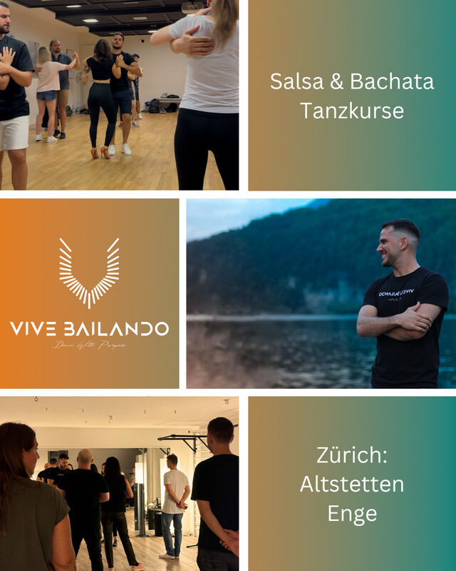 Willkommen bei Vive Bailando Unsere Kurse sind geprägt von einer entspannten und freudigen Atmosphäre. Mit viel Humor und der Liebe zum Detail gestalten wir den Unterricht so, dass sich alle Teilnehmer wohlfühlen und individuell auf ihre Bedürfnisse eingegangen wird. Egal, ob du deine ersten Tanzschritte wagst oder dich auf den nächsten Wettbewerb vorbereitest – bei uns bist du in den besten Händen! Mit über 10 Jahren Erfahrung im Tanzunterricht und auf der Wettkampfbühne bringt unser Team – unter der Leitung von Tiago Peixoto – jede Menge Leidenschaft und Fachwissen in den Tanzsaal. Wir sind spezialisiert auf Salsa und Bachata und bieten sowohl Anfängern als auch Fortgeschrittenen die Möglichkeit, ihre Tanzfähigkeiten zu verbessern. Unser Angebot: Salsa & Bachata Paartanzkurse Salsa & Bachata Choreoteams Spezial-Workshops und Privatstunden Besuche uns auf unserer Website und erfahre mehr über unser Kursangebot und die nächsten Events: https://vivebailando.ch/ Folge uns auf Instagram für die neuesten Updates, Videos und Eindrücke aus dem Unterricht: https://www.instagram.com/vivebailando.ch/ Du möchtest Teil unserer Community werden und den Spaß am Tanzen mit uns teilen? Dann melde dich noch heute für eine Probestunde an! Wir freuen uns darauf, dich kennenzulernen. https://vivebailando.ch/