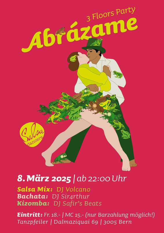 Abrazame Party auf 3 Floors! 🎉 Tauche ein in die rhythmische Welt der Latin Music bei unserer Abrazame Party! 💃🕺 Wir bieten euch drei aufregende Tanzflächen: 🔸 Salsa Mix Floor 🔸 Bachata Floor 🔸 Kizomba Floor Unsere talentierten DJs heizen euch mit den besten Beats ein: 🎶 Salsa Cubana 🎶 Bachata 🎶 Reggaeton 🎶 New York Style on2 🎶 Salsa Puerto 🎶 Chachacha 🎶 Kizomba Eintritt: 18 Fr. (NUR BARGELD) Mitglieder: 15 Fr. (NUR BARGELD) Schnapp dir deine Tanzschuhe und sei dabei! Lasst uns die Nacht durchtanzen! 💥💃🕺