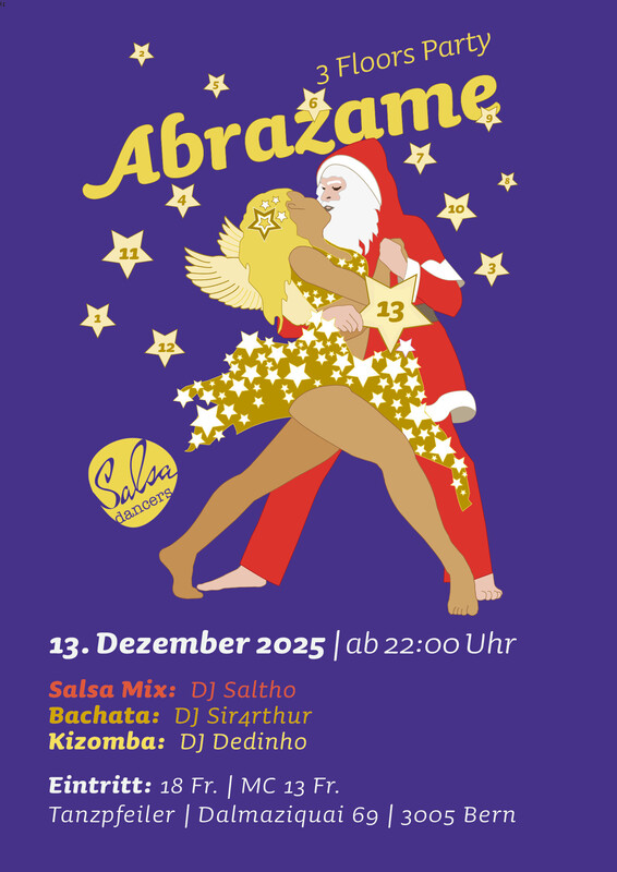 Abrazame Party auf 3 Floors! 🎉 Tauche ein in die rhythmische Welt der Latin Music bei unserer Abrazame Party! 💃🕺 Wir bieten euch drei aufregende Tanzflächen: 🔸 Salsa Mix Floor 🔸 Bachata Floor 🔸 Kizomba Floor Unsere talentierten DJs heizen euch mit den besten Beats ein: 🎶 Salsa Cubana 🎶 Bachata 🎶 Reggaeton 🎶 New York Style on2 🎶 Salsa Puerto 🎶 Chachacha 🎶 Kizomba Eintritt: 18 Fr. (NUR BARGELD) Mitglieder: 15 Fr. (NUR BARGELD) Schnapp dir deine Tanzschuhe und sei dabei! Lasst uns die Nacht durchtanzen! 💥💃🕺