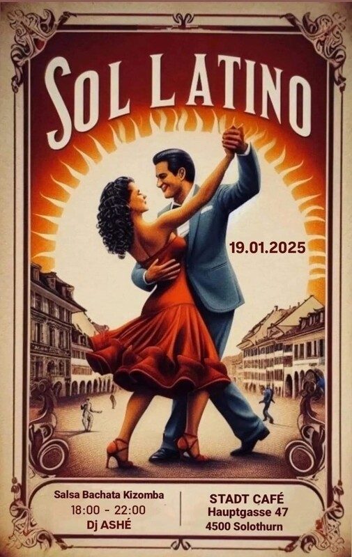 ✨️ SOL LATINO ✨️ Im Herzen von Solothurn: Wir laden Sie ein, gemeinsam einen lateinamerikanischen Abend zu tanzen und zu geniessen. Wir werden zu bekannten Rhythmen tanzen. Salsa . Bachata . Kizomba . Dj Ashe 🇨🇺 Wir freuen uns auf Euch. STADT CAFE Hauptgasse 47,4500 Solothurn Die schönste Barockstadt der Schweiz .