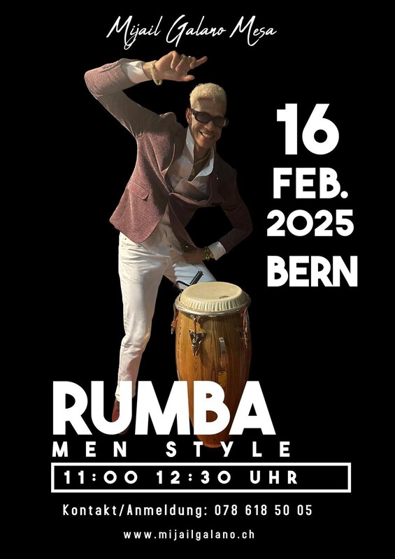 Sonntag in Bern Workshop Rumba Cubana mit Mijail Galano 11:00 - 12:30 Rumba Cubana Men Style Info & Anmeldung 078 618 50 05 Aquí El Que Baila Goza www.mijailgalano.ch