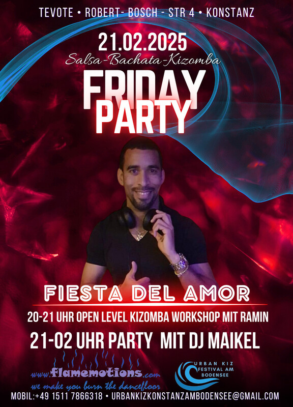 เผป ๐ ๐๐๐๐๐ ๐๐๐ ๐๐๐๐ เผบ ๐๐๐๐๐ ๐ ๐๐๐๐๐๐ ๐๐๐๐๐ โฆ Salsa โฆ Bachata โฆ Kizomba โฆ Taucht ein in die Welt der Musik und des Tanzes! Die Fiesta del Amor lรคdt euch zu einer unvergesslichen Nacht voller Leidenschaft, Freude und lateinamerikanischer Rhythmen ein. Ob Salsa-, Bachata- oder Kizomba-Fan โ hier kommen Tanzbegeisterte zusammen, um gemeinsam zu feiern! ๐ Wann? Jeden Freitag ๐ Programm: 20:00 Uhr: Workshop (Open Level โ fรผr alle geeignet) 21:00 - 22:00 Uhr: Begrรผรung mit einem Glas Sekt โ stoรt mit uns an! 21:00 Uhr: Party-Beginn โ Die Tanzflรคche gehรถrt euch! Unser DJ sorgt bis 02:00 Uhr fรผr die perfekte Mischung aus Salsa, Bachata und Kizomba. โจ Eintritt: Der Eintritt auf Spendenbasis um die Gage des DJs und die Raummiete zu decken. ๐น Wichtiger Hinweis: Bitte bringt keine eigenen Getrรคnke mit. Unsere Bar bietet euch eine Auswahl an kรผhlen Drinks, um euren Abend perfekt zu machen. ๐ Location: Robert-Bosch-Straรe 4, 78467 Konstanz ๐ Besondere Highlights: ๐ Professioneller Tanzboden fรผr das ultimative Tanzvergnรผgen ๐ Kostenlose Parkplรคtze direkt vor Ort Verpasst nicht diese besondere Nacht! Tanzt, feiert und genieรt die Fiesta del Amor mit uns โ jeden Freitag! Wir freuen uns auf euch! ๐ด๐ถ๐๐บ https://www.facebook.com/share/12GKBvv3Je8/