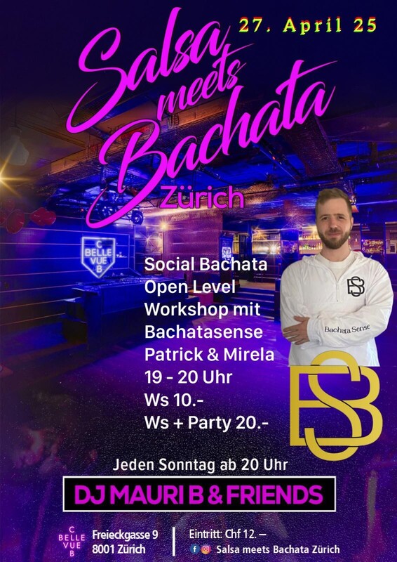 Salsa meets Bachata - Zürich Es wird heiss wenn diese zwei Rhythmen aufeinander treffen. Ein Abend vollgepackt mit dem besten, angesagtesten Sound dieser zwei Stile - da kann niemand mehr ruhig sitzen. Ganz nach dem Motto: BEST MUSIC, ONLY KILLER, NO FILLER ! Salsa und Bachata - all styles Bachata Open Level mit Bachatasense Patrick & Mirela Ws 10.- / Ws + Party 20.- Start Workshop: 19 Uhr Start Party: 20 Uhr Dj Mauri B fb & insta: Salsa meets Bachata Zürich Zahlungsmittel: Bar / Kreditkarten / Twint
