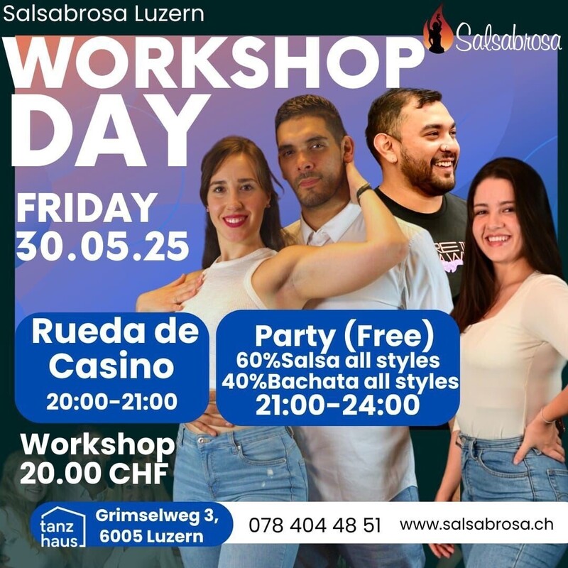Tanzhaus Luzern Veronica De Jesus 30 de mayo de 2025 20:00 fiesta Workshop Day / Social Event Estuviste en este evento? Agrega tus fotos! Precio de entrada: CHF 20.00 Share on Facebook Eventos