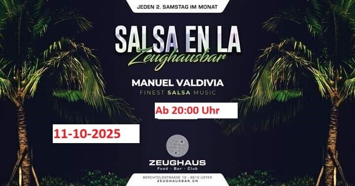 Zeughausbar 1 événements 3 galeries de photos Manuel Valdivia samedi 11 octobre 2025 20h00 Salsa in Zeughausbar . Uster.DJ Manuel Avez-vous été à cet événement? Ajouter vos photos! Prix d'entrée: CHF 0.00 Share on Facebook Événements