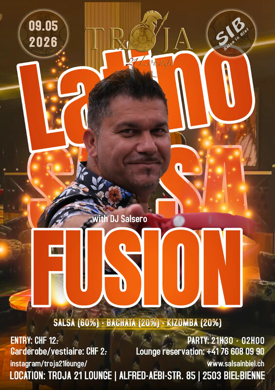🌟 LATINO FUSION NIGHT – Salsa, Bachata, Kizomba & More! 🌟 Bereit für eine Nacht voller Rhythmus, Leidenschaft und karibischer Energie? Unsere Latino Fusion Night vereint die beliebtesten Latin- und Afro-Stile – eine perfekte Mischung für alle, die tanzen, feiern und die Musik spüren wollen! 🔥 Was dich erwartet: ✨ Eine heisse Fusion aus Salsa, Bachata, Kizomba & mehr ✨ Offene Tanzfläche für alle Levels – jede*r ist willkommen ✨ Tolle Community, gute Stimmung und viel Energie ✨ Drinks & Musik, die dich garantiert nicht stillstehen lassen 🗓 Datum: 09.05.2026 📍 Ort: Troja 21 Lounge, Alfred-Aebi-Strasse 85, 2503 Biel 🕘 Zeit: 21H30 bis 2h00 🎧 Musik: DJ SALSERO Egal ob du neu bist oder schon lange tanzt: Komm vorbei, geniesse den Flow und erlebe eine Nacht voller Freude, Bewegung und guten Vibes. 💃🕺 👉 Save the Date – Let’s dance, connect & celebrate! 🎟 Eintritt: 12 CHF 🧥Garderobe: 2 CHF Verpasse nicht diese einmalige Gelegenheit und sei dabei, wenn wir Biel mit unserer Latino Fusion Night zum Beben bringen! 🔥 Team SIB + Troja 21 Lounge 🇫🇷 🇫🇷 🇫🇷 🇫🇷 🇫🇷 🌟 LATINO FUSION NIGHT – Salsa, Bachata, Kizomba & More! 🌟 Prêt(e) pour une nuit pleine de rythme, de passion et d’énergie caribéenne ? Notre Latino Fusion Night réunit les styles latinos et afro les plus populaires – le mélange parfait pour tous ceux qui veulent danser, faire la fête et vibrer au son de la musique ! 🔥 Ce qui t’attend : ✨ Une fusion chaude de Salsa, Bachata, Kizomba & plus ✨ Une piste ouverte pour tous les niveaux – tout le monde est le/la bienvenu(e) ✨ Une superbe ambiance, une belle communauté et beaucoup d’énergie ✨ Des boissons & de la musique qui ne te laisseront pas rester immobile 🗓 Date : 09.05.2026 📍 Lieu : Troja 21 Lounge, Alfred-Aebi-Strasse 85, 2503 Bienne 🕘 Horaire : 21h30 à 2h30 🎧 Musique : DJ SALSERO Que tu sois débutant(e) ou danseur(se) expérimenté(e) : Viens profiter du flow et vivre une soirée pleine de joie, de mouvement et de good vibes. 💃🕺 👉 Save the Date – Let’s dance, connect & celebrate! 🎟 Entrée : 12 CHF 🧥 Vestiaire : 2 CHF Ne manque pas cette soirée unique et viens faire vibrer Bienne avec nous lors de la Latino Fusion Night ! 🔥 Team SIB + Troja 21 Lounge https://www.salsainbiel.ch/events/