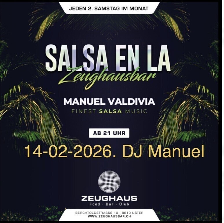 Zeughausbar 1 eventos 3 galerías de fotos Manuel Valdivia 14 de febrero de 2026 21:00 fiesta Salsa in Zeughaus Salsa von A bis Z Share on Facebook ¡Gracias por visitar latino.ch! Hemos quitado la publicidad de Google para que el sitio sea más agradable de usar. Si quieres apoyar nuestro trabajo, tu contribución sería realmente valiosa para ayudarnos a mantener y mejorar este proyecto. Eventos sáb, 14. feb 21:00 fiesta Salsa in Zeughaus Zeughausbar Uster, Switzerland