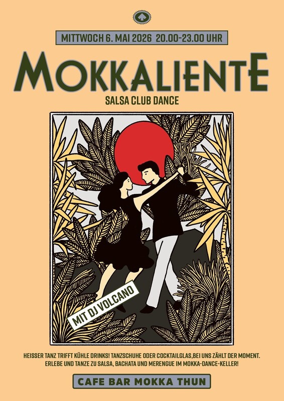 Heisser Tanz trifft kühle Drinks! Tanzschuhe oder CocktailgLas, bei uns zählt der Moment. Erlebe und tanze zu Salsa und Bachata auf den MOKKA-Dancefloor mit Dj Volcano Zeit: 20.00-23.00