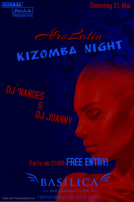 AFROLATIN KIZOMBA NIGHT DIENSTAG 21. Mai - MUSIC by DJ JUANNY & DJ 'NANDES Party from 21:00h - midnight. "Das BASILICA ist am Dienstag schon ab 17:00h für alle geöffnet und der Eintritt ist frei". _____________________________ BASILICA - BAR * LOUNGE * CLUB Heinrichstrasse 237 8005 Zürich https://www.facebook.com/events/