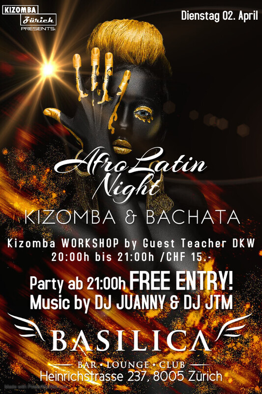 DIENSTAG 02. April - KIZOMBA WORKSHOP Intermediate by DKW (CHF 15.-) - MUSIC by DJ Juanny & DJ JTM Workshop from 20:00h - 21:00h Party from 21:00h - open end "Das BASILICA ist am Dienstag schon ab 17:00h für alle geöffnet und der Eintritt ist frei". _____________________________ BASILICA - BAR * LOUNGE * CLUB Heinrichstrasse 237 8005 Zürich https://www.facebook.com/events/7506809516054263