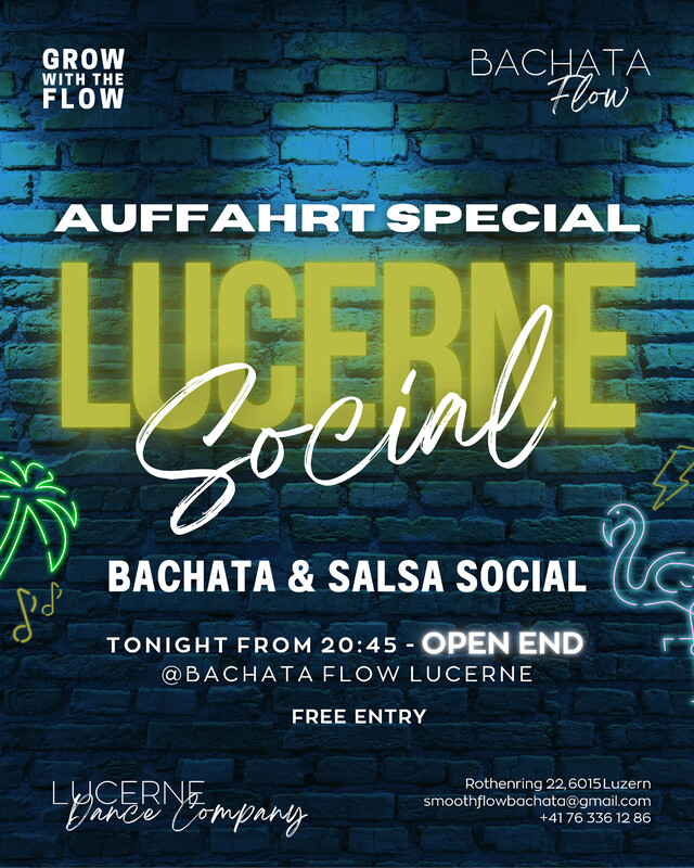 Am Mittwoch, 28. Mai, feiern wir ein ganz besonderes Event: Auffahrt Special – ab 20:45 Uhr, open end! 💃🕺 Erlebe eine unvergessliche Nacht voller Musik, Tanz und guter Stimmung – egal ob Anfänger oder Profi, bei uns ist jeder willkommen! 🎉 Was dich erwartet: -Extra-lange Tanznacht zum Auffahrts-Feiertag – wir tanzen bis keiner mehr kann! -Beste Bachata- & Salsa-Vibes in entspannter Atmosphäre -Eintritt frei – einfach kommen & mittanzen Barbetrieb für kühle Drinks zwischendurch Bring deine Freunde mit und lasst uns zusammen die Nacht durchtanzen! Wir freuen uns auf dich! https://www.instagram.com/bachata_flow_lucerne/