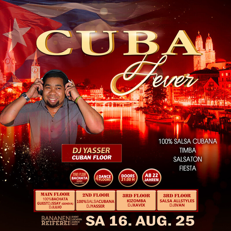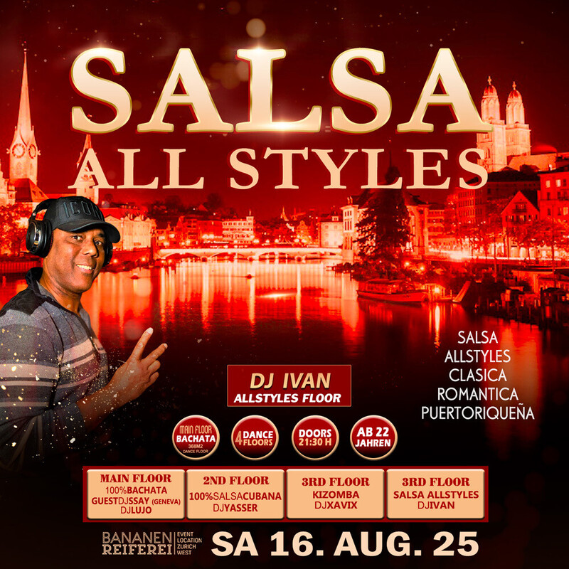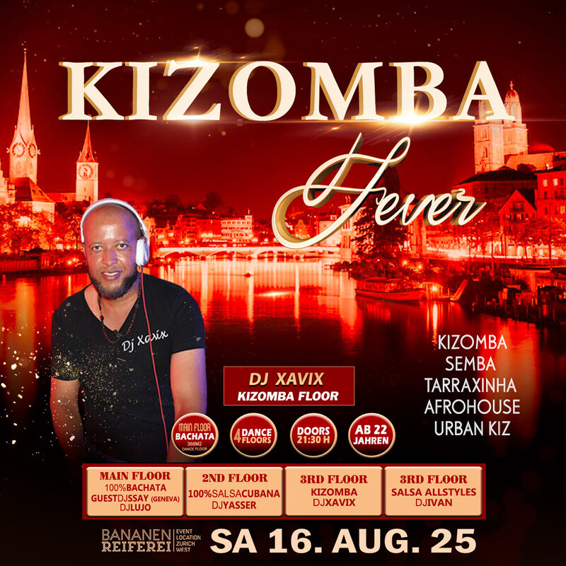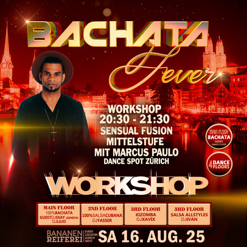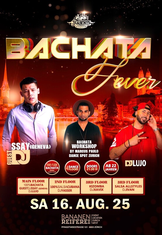 đ„ BACHATA FEVER đ„ Guest DJ SSAYY-(Geneva) DJ LUJO Workshop by Marcus Paulo Bananenreiferei by Juanes đ„đ„đ„ â 4 DANCE FLOORS â AB 22 JAHREN â DOORS: 21:30 â 04:00 UHR â EINTRITT CHF 20.- â EINTRITT: BEZAHLUNG AN DER KASSE NUR BARGELD â GRATIS GARDEROBE â 400 AUTO PARKPLĂTZE đ„đ„đ„ 20:30 Uhr WORKSHOP BY MARCUS PAULO OPENFORMAT BY DANCE SPOT ZĂRICH. đ„ Sie brauchen nicht zu buchen, kommen Sie direkt zum Bananenreiferei am Samstag 16. August um 20:15 Uhr. Der Workshop Preis ist CHF 25.- Inkl. Garderobe & Party auf 4 Dance Floors. đ„đ„đ„ â MAIN FLOOR: 100% BACHATA FEVER (371 m2 Dance Floor) â DJ SSAY (Geneva) â DJ LUJO Bachata Fusion, Sensual, Moderna, Clasica, Del Recuerdo đ„đ„đ„ â 2ND FLOOR: 100% SALSA CUBANA: â DJ YASSER 100% Salsa Cubana, Timba, Rumba,Fiesta. đ„đ„đ„ đ„ 3RD FLOOR: KIZOMBA FEVER: â DJ XAVIX Kizomba, Semba, Tarraxinha, Afrohouse, Urban Kiz đ„đ„đ„ â 4TH FLOOR: SALSA ALLSTYLES â DJ IVAN Salsa Allstyles, Clasica, Puertorriqueña, Romantica đ„đ„đ„ BANANENREIFEREI Pfingstweidstrasse 101 8005 ZĂŒrich đ„đ„đ„ DATES BACHATA FEVER 2025 BANANENREIFEREI Sa 16. August 2025 Sa 18. Oktober 2025 Sa 15. November 2025 đ„đ„ Bienvenidos Juanes Events