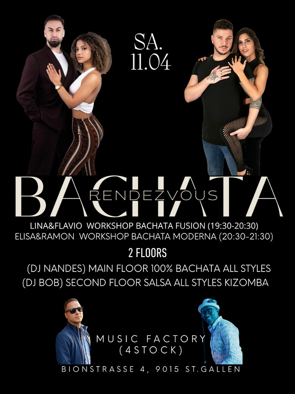 🔥 BACHATA RENDEZVOUS – ROOFTOP EXPERIENCE 🔥 🌇 Rooftop Vibes • 2 Dance Floors • Top Workshops 💃 Main Floor: 100% Bachata (alle Styles) 🕺 Second Floor: Salsa & Kizomba ⸻ 🎟️ Party Only → 20 CHF 1 Workshop → 15 CHF 2 Workshops → 30 CHF. 🚀 FULL PASS EXPERIENCE 2 Workshops + Party → 40 CHF 💥 BEST DEAL – spare & erlebe alles Workshop Bachata fusion (Lina&Flavio) 19:30/20:30 Workshop Bachata Moderna (Elisa & Ramon) 20:30/21:30 ✔️ Exklusives Rooftop 🌇 ✔️ 2 Dance Floors 🔥 ✔️ Top Level Workshops 💯 ✔️ +200 GRATIS PARKPLÄTZE 🚗 ✔️ Lift direkt in den 4. Stock ⸻ 🍸 BAR & EINTRITT 🎟️ Eintritt: NUR BARZAHLUNG (Cash Only) 🍹 Bar: Cash oder TWINT