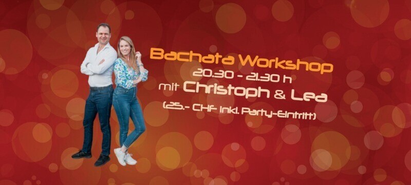 Bachata Workshop mit Christoph & Lea von 20:30h - 21:30h inkl. Party-Ticket für Fiesta Pasión Lerne neue Bachata Figuren mit Christoph & Lea und tanze diese gleich anschliessend an der Fiesta Pasión ab 21:30 Uhr mit 3 Floors, u.a. mit Bachata-Floor mit DJ Dani! Workshop inkl. Party-Eintritt für 25.- CHF Vorverkauf: https://eventfrog.ch/de/p/kurse-seminare/musik-tanz/bachata-workshop-mit-christoph-lea-7244083799004248604.html https://eventfrog.ch/de/p/kurse-seminare/musik-tanz/bachata-workshop-mit-christoph-lea-7244083799004248604.html