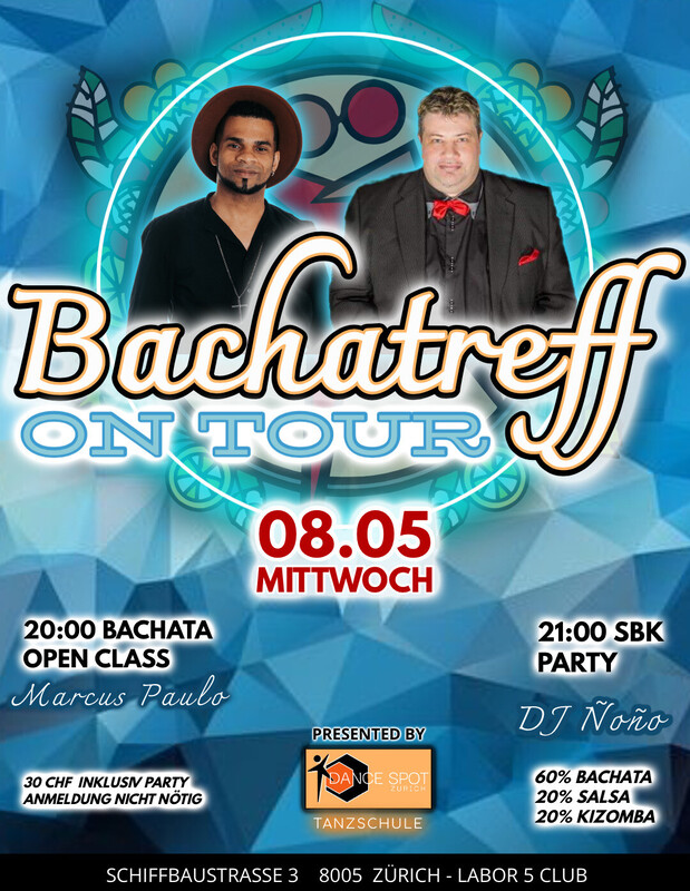 Hola Bachateros & Bachateras! Bachatreff ist eine durch das Dance Spot Zurich Tanzstudio organisierte Veranstaltung, die regulär jeden Mittwoch in Zürich stattfindet. BACHATREFF ON TOUR (Different Location) Dies ist eine alternative Special Edition des BachaTreff, welche entweder im Dance Spot Zurich Studio oder einem Partner-Tanzlokal stattfindet. Genauere Infos zu Adresse siehe unten LOKAL Seit 7 Jahren bringt unser Event neue Tänzer auf die Tanzflächen von Zürich und Umgebung! "Make it your second home". _______________________________________ ///// PROGRAMM ///// ★ 20:00 - 21:00 BACHATA URBANA WORKSHOP "by Marcus Paulo • Dance Spot Zurich" _______________________________________ ★ 21:00 PARTY TIME 60% Bachata 20% Salsa 20% Kizomba Music by DJ Ñoño _______________________________________ ★ PREIS • Open Class + Party: 30.- CHF • DSZ Club Preis: 20.- CHF • Nur Party: 15.- CHF • DSZ Club Preis: 10.- CHF Garderobe Gratis _______________________________________ ★ LOKAL: Dance Spot Zurich TMC Fashion Square Thurgauerstrasse 117, 8152 Zürich 1. Stock, Studio 188 https://www.facebook.com/share/Z5Gtt8prXeGq8M89/