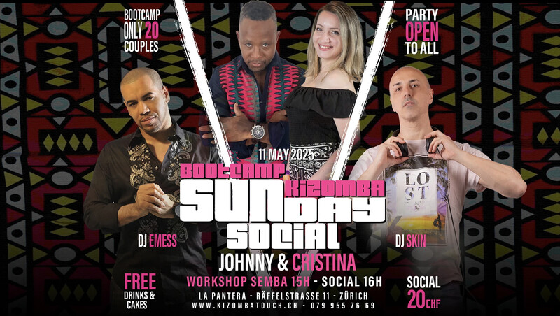 🆕 Edition 2025 is here 🆕 Your beloved Sunday social keeps going with amazing artists. 🆆🅷🅰🆃 🆃🅾 🅴🆇🅿🅴🅲🆃: ✅ 1h Semba Workshop with Jonnhy & Cristina ✅ Social Party with FREE DRINKS & DELICIOUS CAKES ( All you can eat ;) ) 🎧 2 DJS in Console to cover all the Kizomba-Semba Umbrella ( No UrbanKiz or Kizomba fusion ) 🅿️ FREE PARKING 🧥 FREE CLOAKROOM ( NOT surveilled 🕵🏾‍♀️) 🅿🆁🅾🅶🆁🅰🅼 14:30 Door opening 15:00 - 16:00 Workshop Semba 16:00 - 21:00 SOCIAL PARTY with DJ Emess and Dj Skin 🆆🅷🅴🆁🅴 La Pantera - Räffelstrasse 11 - Zurich 🆃🅸🅲🅺🅴🆃🆂 https://www.kizombatouch.ch/event-details/back-to-the-roots-sunday-social-workshop-semba-with-johnny-cristina https://www.kizombatouch.ch/event-details/back-to-the-roots-sunday-social-workshop-semba-with-johnny-cristina