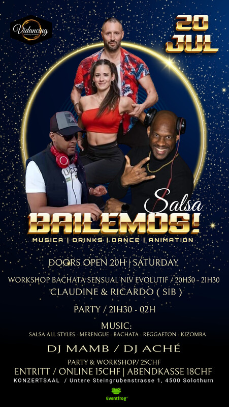 ✨️ YESSSS! ....Welcome to BAILEMOS SALSA Konzertsaal Solothurn ➖️➖️➖️➖️➖️➖️➖️➖️➖️➖️➖️➖️➖️➖️➖️➖️➖️➖️➖️ ✨️PROGRAM: 🔜Doors open 8:00p.m. 🔜Workshop Bachata Sensual Niv Evolutivo / RICARDO & CLAUDINE (SIB) 20:30p.m https://www.instagram.com/reel/C5JksvCteZ0/?igsh=b3FmaTl4ejN5cTZp ✨️IMSCRIPTION https://facebook.com/events/s/bailemos-salsa-workshop-bachat/1036870348056538/ 🔜Party _ 21:30 p.m. -🔚 2:00 a.m. ✨️DJs: ✌🏽Mamb DJ 🇨🇺 ✨️MUSIC: ✌🏽Salsa all styles ✌🏽Cha Cha Cha ✌🏽Bachata all styles ✌🏽Reggaeton/ Animation ✌🏽And 10% Kizomba ✨️LINK EVENTS ONLINE https://eventfrog.ch/fr/p/soiree-fete/bal-soiree-de-gala/bailemos-salsa-im-konzertsaal-solothurn-7203740783563757528.html ✨️PRICES: ✌🏽Party Online/ CHF15 ✌🏽Party Abendkasse/ CHF18 ✌🏽Party & Workshop/ CHF25 ✨️ORGANIZER LINK https://www.facebook.com/cubazucar ✨️EVENT LOCATION https://g.co/kgs/CJqA2XV ✨️ADDRESS: Konzertsaal Solothurn/ Steingrubenstrasse 1, 4500 Solothurn https://www.facebook.com/share/WvJQEr9yPEL4ocvM/