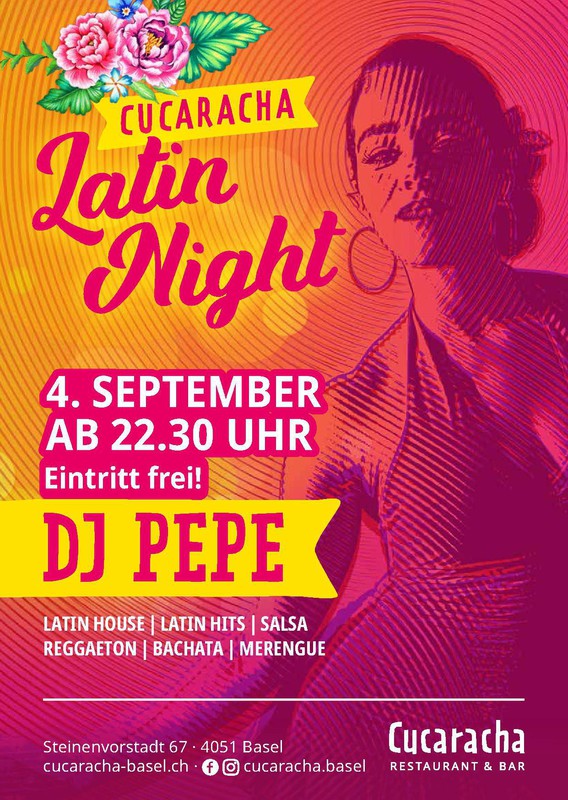 Für dich und deine Freunde haben wir das perfekte Abendprogramm für ein ausgelassenes Wochenende! Tanze zu heissen Latin Beats aufgelegt von DJ Pepe, dazu gibt's beste Cocktails und leckeres Essen. Jeweils am 1. Samstag im Monat ab 22:30 Uhr, Eintritt frei! https://www.facebook.com/events/365843791794948?ref=newsfeed