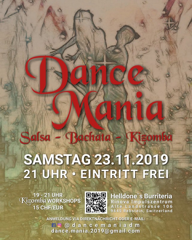 Hey zusammen! Es geht weiter, Party startet ab 21 Uhr: EINTRITT FREI ! Diesmal im Helldone‘s Burriteria - Rebstein ist ein mexikanisches Street Food Restaurant mit sehr viel Charakter! 😊 Kommt und überzeugt euch selbst! Toller Boden - super Sound Anlage - leckere Küche - außergewöhnliche Drinks - ein einzigartiges Ambiente zum wohlfühlen wartet auf euch! UND 🚗🅿 Es gibt genug Parkplätze 😉 🎶🎶 Musik: Salsa, Bachata, Kizomba, Mambo, Cha Cha Cha, Urban Kiz, ... * Kizomba / UrbanKiz Workshops: * 19 - 20 Uhr BASICS - Nicht nur für Anfänger! 😉 Kein Partner nötig! 20 - 21 Uhr Tricks und Moves - Grundkenntnisse erforderlich! einzeln pro Stunde 15.- CHF/EUR beide Workshops zusammen 20.- CHF/EUR ANMELDUNG bitte via Direktnachricht oder E-Mail: Dance Mania @dancemaniadm über Instagram, Facebook oder dance.mania.2019@gmail.com #salsa #bachata #kizomba #socialdancing #stgallen #switzerland #dancer #latin #afro #rheintal #lakeofconstance #party #fun #social #saturday #saturdaynight #afrolatin #au #dancenight #dance #workshop #cocktails #drinks #love #music #fun #nightlife #friends #dj #fiesta #events #like #happy #night https://www.facebook.com/events/1180493488801257/