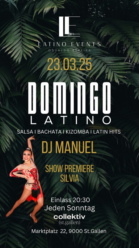 ‼️‼️Domingo Latino‼️‼️ Show Premiere Silvia Dj Manuel #SALSEROSSILLAMANYOVENGO🎵🎶 #ESOOOO💃🏼🕺 Jeden Sonntag findet jetzt neue in Collektiv am Marktplatz 22 St. Gallen der Tanz-Event DOMINGO LATINO statt. Wie immer erwarten euch Osvaldo und seine resident DJs. Kommt vorbei und tanzt in einem tollen Ambiente zu sensationellen Musik. 💃🏽🕺🏻 #ABAILAR #bachata #latinamericandance #salsacubana #salsabachata #kizombaaddict#latino #salsadancing #socialdance #DomingoLatino #fiestalatina #sundayfunday