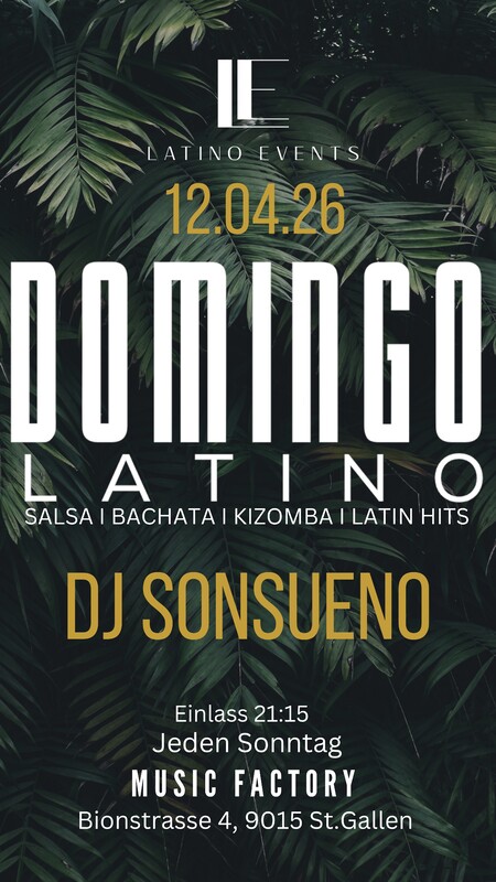 ‼️‼️ Domingo Latino ‼️‼️ #SALSEROSSILLAMANYOVENGO 🎵🎶 #ESOOOO 💃🕺 #ABAILAR LOCATION: tanzen wir jeden Sonntag im Rooftop der Music Factory 📍 Bionstrasse 4, 9015 St. Gallen (4. Stock mit Lift) 🚌 Bus: St. Gallen Russen | Altenwegen 🚗 Gratis Parkplatz – Tiefgarage (2UG/3UG) & Aussenparkplätze 💃 300 m² Dancefloor | Rooftop Vibes | Neue Energie Wie immer erwarten euch das Latino Events Team und unsere Resident DJs mit Salsa, Bachata & Kizomba in einem einmaligen Ambiente ! 🗓 Jeden Sonntag ab 21:15 Uhr Bringt eure Freunde mit und macht den Sonntag zum Highlight der Woche! Domingo Latino – die Party, die euch den Montag vergessen lässt ❤️🔥 #bachata #latinamericandance #salsacubana #salsabachata #kizombaaddict #latino #salsadancing #socialdance #DomingoLatino #fiestalatina