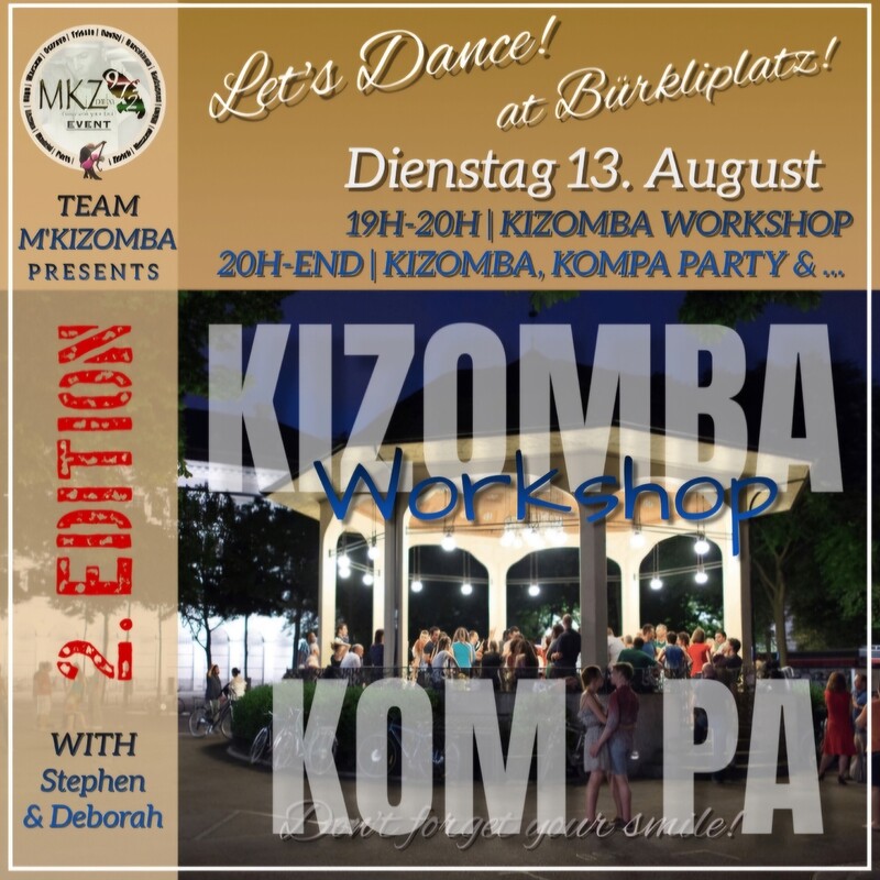 ❤🔥 _Dear dancers_ ❤🔥 As you wish... _This Tuesday, 13th August 2024._ After the success of the 1rst Edition 🥳💃🏼🕺🏾💃 We will have for the 2nd Edition a _100% Kizomba, Kompa Event & more..._ 💃🏽 *Program*🕺🏽 19:00-19:30 Crash course (no prior knowledge required) 19:30-20:00 Open-level class ACT. II (you should know at least the basic steps see Act. I) 20:00-End Let's dance ❤️🔥 This Tuesday the classes will be taught by Stephen & Deborah 💃🏻🕺🏾 ⚖️ *Concept* 🤓 The Kizomba classes will helping you to improve your trust in yourself... Let's it go, "lâcher prise" en français... 🥹 _Donations are welcome_💶 More 💰📥 = More Music ⏳ 📍 *Bürkliplatz:* https://maps.app.goo.gl/gtaBzstacCMzN4bb6 🚽 Public toilet nearby : https://maps.app.goo.gl/P41Mxj7DyJrcecGV6 👠👞🧦 The floor is perfect for all feet, all shoes as you wish 🍺 Bring your own snacks and drinks! 🥪 All speaker UE Boom, Megaboom 3 minimum are welcome 🎼🎧 Power Bank also 🪫🔋 Thanks Looking forward to seeing you! 🤗🥹💃🏻🕺🏾 Team M'KiZomba Link for this group: https://chat.whatsapp.com/HsxkUKNIes12w7zsCfPyzv https://facebook.com/events/s/lets-dance-kizomba-kompa-burkl/3984201745146773/