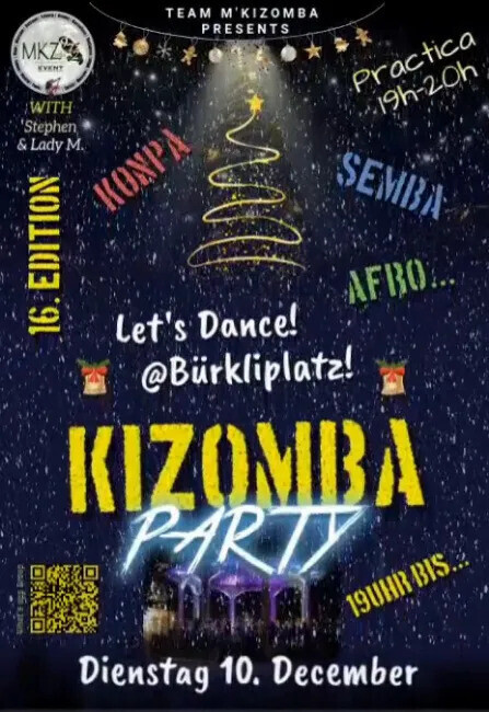 As you wish... Tuesday, 10th December 2024 We will have the 16th Edition 100% Kizomba for the social & more. 💃🏽 Program🕺🏽 19:00 - 20:00 "Practica" — Combines the idea of practice with a social dance: improve & enjoy. 19:00 - open end "Social Dance" 🫂 New Concept 🫂 Practica = Music will play all the time; you can just dance, or ask us for tips on how to improve your dancing. 🎼 Hosted by Stephen & Lady M. 💃🏻🕺🏾 🫶🏻 Donations Corner 🫶🏽 Thanks for your support 🫱🏼‍🫲🏾💰 🙏🏾 📍 Bürkliplatz: https://maps.app.goo.gl/gtaBzstacCMzN4bb6 🚽 Public toilet nearby: https://maps.app.goo.gl/P41Mxj7DyJrcecGV6 👠👞🧦 The floor is perfect for all feet & all shoes. 🧃🍺 Bring snacks and drinks to share 🥪🥨 🚮🫵 If you like this place: don't forget to clean before leaving 🙏🏻🙏🏽🙏🏿 😃 Looking forward to seeing you 🤗 ❤‍🔥 Team M'KiZomba 💃🏻🕺🏾 What's App Group: https://chat.whatsapp.com/HsxkUKNIes12w7zsCfPyzv 🕺Facebook event:💃🏼 https://fb.me/e/542KGkDUS 🫶🏻🫶🏽🫶🏿 Join us & bring friends 💃🏻🕺🏾 🥳 Thank You❣️ https://www.instagram.com/stephen_mkiz972/