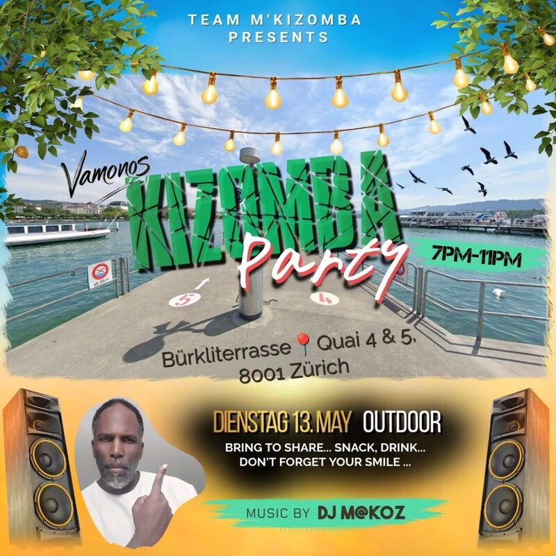 Let's Dance Kizomba! Züri Tour! Hoi Zämme, Salut lé Zanmis, Ladies & Gentlemen, Are you ready? *Next Tuesday 13th May* 💃🏻🕺🏾 _Because we love Bürkliplatz!_ Let's Dance Open Air on this Beautiful place just above the lake... 🫂❤‍🔥 New Program : Practica & Party 7pm-8pm : Practica (Workshop on demand) 7pm-11pm : Just come and Dance ... on Kizomba & more Participation /Practica /Workshop : Donation https://fb.me/e/4vr3BWBfo See you on the dancefloor 🥳 ❤️‍🔥 _Team M'KiZomba_ ❤‍🔥 https://fb.me/e/4vr3BWBfo
