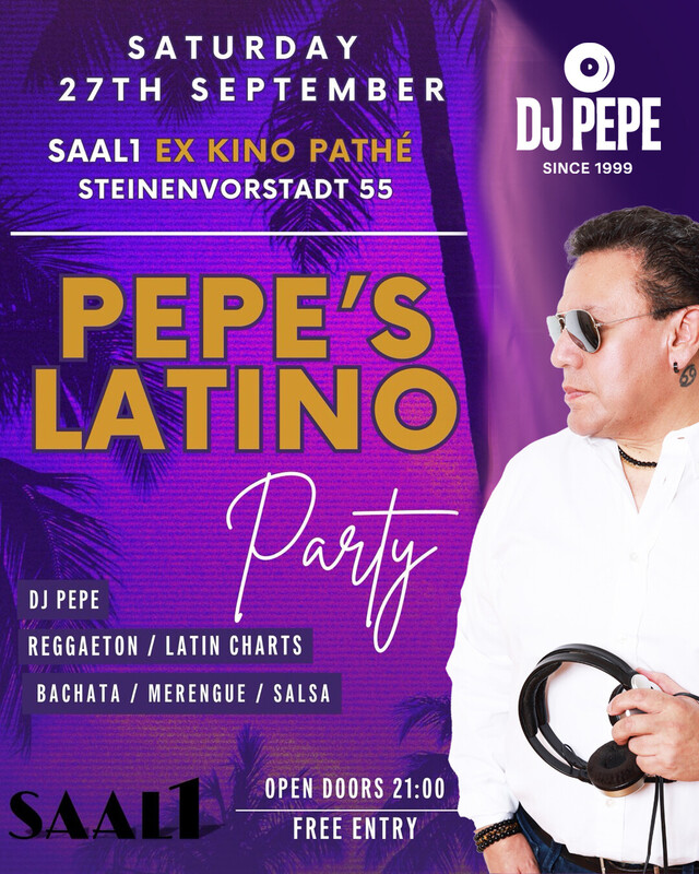 🎉 ¡Fiesta Latina im Saal1! 💃🕺 Ab August heisst es jeden Monat: Latin Beats, gute Vibes und heisse Rhythmen im Herzen von Basel! 🎧 Mit DJ Pepe – direkt aus Basel, aber mit dem Sound der Karibik im Blut! 🕘 Start: 21:00 Uhr 🎟 Eintritt: Gratis 📍 Saal1 Küchlin, Basel Schnapp dir deine Freunde und tanze mit uns durch die Nacht – Salsa, Bachata, Reggaeton & mehr! 🔥