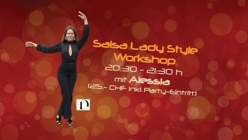 Salsa Lady Style mit Alessia (Studio "La Dinamica") Lerne einen neuen oder verbessere deinen eigenen Salsa Style: - kurze Pasitos/Shines/Choreografien - gezieltes Arm- und Körpertraining - Rhythmustraining Workshop inkl. Party-Eintritt für 25.- CHF Vorverkauf via Eventfrog: https://eventfrog.ch/de/p/kurse-seminare/musik-tanz/salsa-lady-style-workshop-mit-alessia-7238920090707502413.html