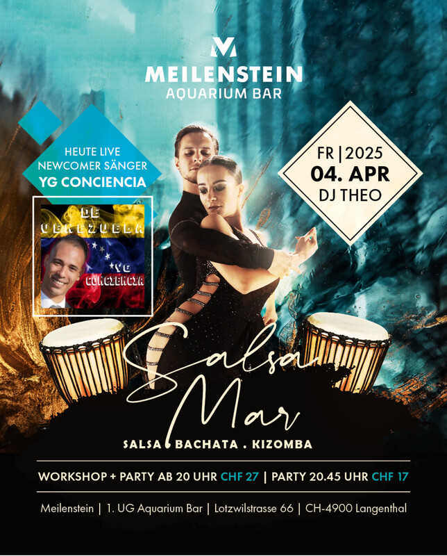 Heute Live mit Newcomer Sänger YG Conciencia (Salsa Venezuela) Unser Salsa Venezuela Special Live Auftritt Taucht im atemberaubenden Ambiente der Aquarium Bar ab und Tanzt zu heissen Rhythmen wie Salsa, Bachata und Kizomba 💃Bachata Workshop 💃