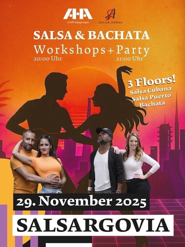 🥳 SalsArgovia – 2. Edition steht an! 📅 Samstag, 29. November 2025 📍 Aeschbachhalle, Aarau 💃🏼🕺🏼 Nach dem grandiosen Auftakt freuen wir uns riesig auf die zweite Runde SalsArgovia – und dieses Mal wird’s noch grösser! 🔥 Freut euch auf 3 Floors, pulsierende Rhythmen & pure Tanzfreude: 🎵 Salsa Cubana Floor, Raum Schmiede – DJ Dario & José 🎵 Salsa Puerto Floor, Raum Eventlounge – DJ Mauri Bri 🎵 Bachata Floor, Raum Stube– DJ Nilay 📚 2 Workshops vor der Party (Start: 20:00 Uhr): 🔥 Bachata Open Level mit Claudine & Ricardo (Grundschritte erforderlich) 🔥 Salsa Puerto Intermediate mit Lea & Sven 💃🏼🕺🏼 23:45 Uhr – Bachata Show der Extraklasse mit Claudine & Ricardo ✨ 👠👞 Tanzschuh-Verkauf während der Party! Entdecke deine perfekten Schuhe mit Marica von Flame Latino. 🎶 Party-Time: 21:00 – 02:00 Uhr Eine Nacht voller Tanz & unvergesslicher Momente wartet auf euch! 🌙🔥 Tickets unter: https://eventfrog.ch/de/p/party/latin-brasil/salsargovia-2-edition-7374715457213847955.html https://eventfrog.ch/de/p/party/latin-brasil/salsargovia-2-edition-7374715457213847955.html