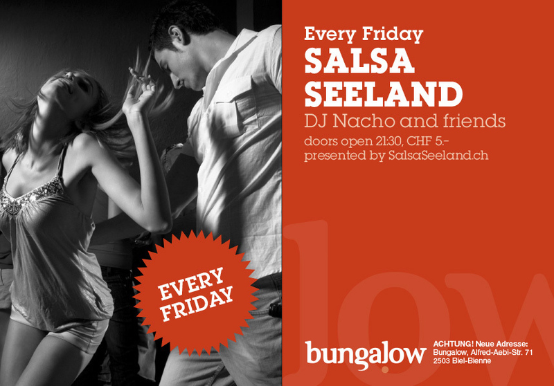 Jeden Freitag! SALSA & LATINO FIESTA MIT DJ NACHO Y SUS AMIGOS! EINTRITT CHF 5.- Kontakt: Pedro 079 562 13 32 http://www.salsaseeland.ch