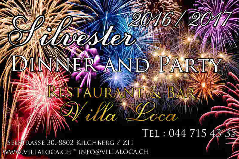 Silvester Dinner & Party SILVESTER ZAUBER AM ZÜRICHSEE 31.12.2017/2018 ☆ ☆ ☆ SILVESTER DINNER & PARTY 2017 / 2018 ☆ ☆ ☆ Mit dieser Feier neigt sich das Jahr 2017 dem Ende und wie schon in den letzten Jahren werden wir es ordentlich krachen lassen. Seien Sie mit dabei und mit unserem Facebook-Event immer auf dem Laufenden. Silvester Dinner & Party SILVESTER ZAUBER AM ZÜRICHSEE 31.12.20172018 http://villaloca.ch/silvesteramzurichsee/ Traumaussicht mit grossem Feuerwerk direkt am See. Bestaunen Sie das bombastische Feuerwerk der Schweiz, den erleuchteten Neujahrshimmel über dem Villa Loca. Starten Sie den Abend mit einem Aperitif. Im Anschluss serviert Ihnen das Team ein exklusives Galamenü in unserem Restaurant Villa Loca. Galamenü Dinner Menu Villa Loca http://villaloca.ch/wp-content/uploads/2017/08/SILVESTER-MENU-20172018-1.pdf SILVESTER – MENU – PARTY Welcome Drink *** Nachos Tres Salsas Para Picar mit Käse überbacken *** Raffinierter Wintersalat Villa Loca mit Rauchlachsstreifen „Leicht und Lecker… mit Liebe gemacht“ *** Zartes Rindsfilet an Morchel-Cognac-Rahmsauce Kartoffelkroketten „Liebeserklärung aus der Küche“ *** Vanilleglace mit Rosenblütensirup und Apfelchüchli „Muss man sich auf der Zunge zergehen lassen“ *** Cüpli und Grosses Feuerwerk Um Mitternacht wird den Gästen unter freiem Himmel direkt am Zürichsee ein Cüpli Prosecco offeriert Es ist der Höhepunkt der Silvesternacht in Zürich: das grosse Feuerwerk über dem Seebecken *** All Inklusiv Hauswein Rot und Weiss, Prosecco, Bier, Mineralwasser, Kaffe, Cola, Eistee, Vodka, und Whiskey DJ, Latino Musik, Partytunes, Party Hits, Disco Preis pro Person All Inklusive CHF 200.00 Let’s Party! Schrieben Sie uns - wir freuen uns auf Ihre Post! Restaurant – Bar – Club Villa Loca Seestrasse 30, 8802 Kilchberg – Zürich www.villaloca.ch info@villaloca.ch Tel: 044 715 43 35